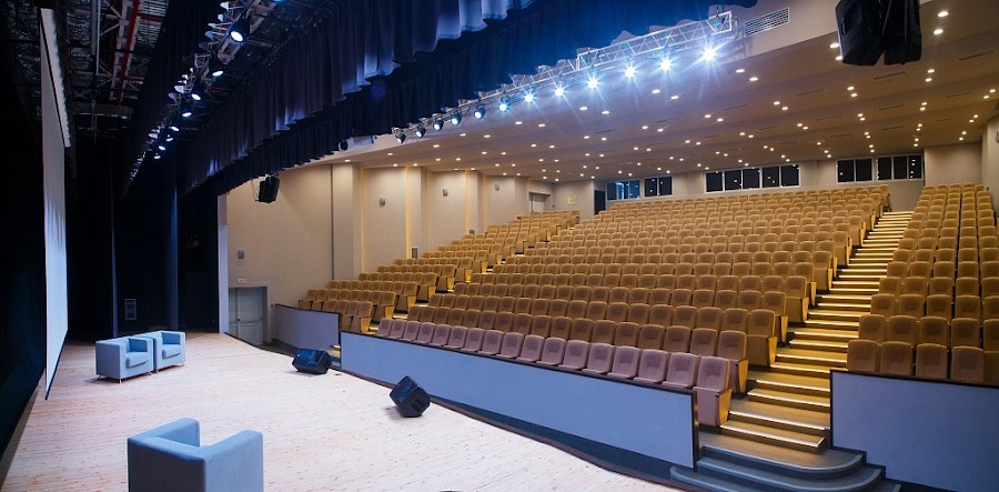 Безупречное решение для частных кинопоказов, музыкальных конкурсов, симпозиумов, бизнес-конференций, театральных встреч. Оснащен кинопроекционным оборудованием и отдельной гримерной комнатой.